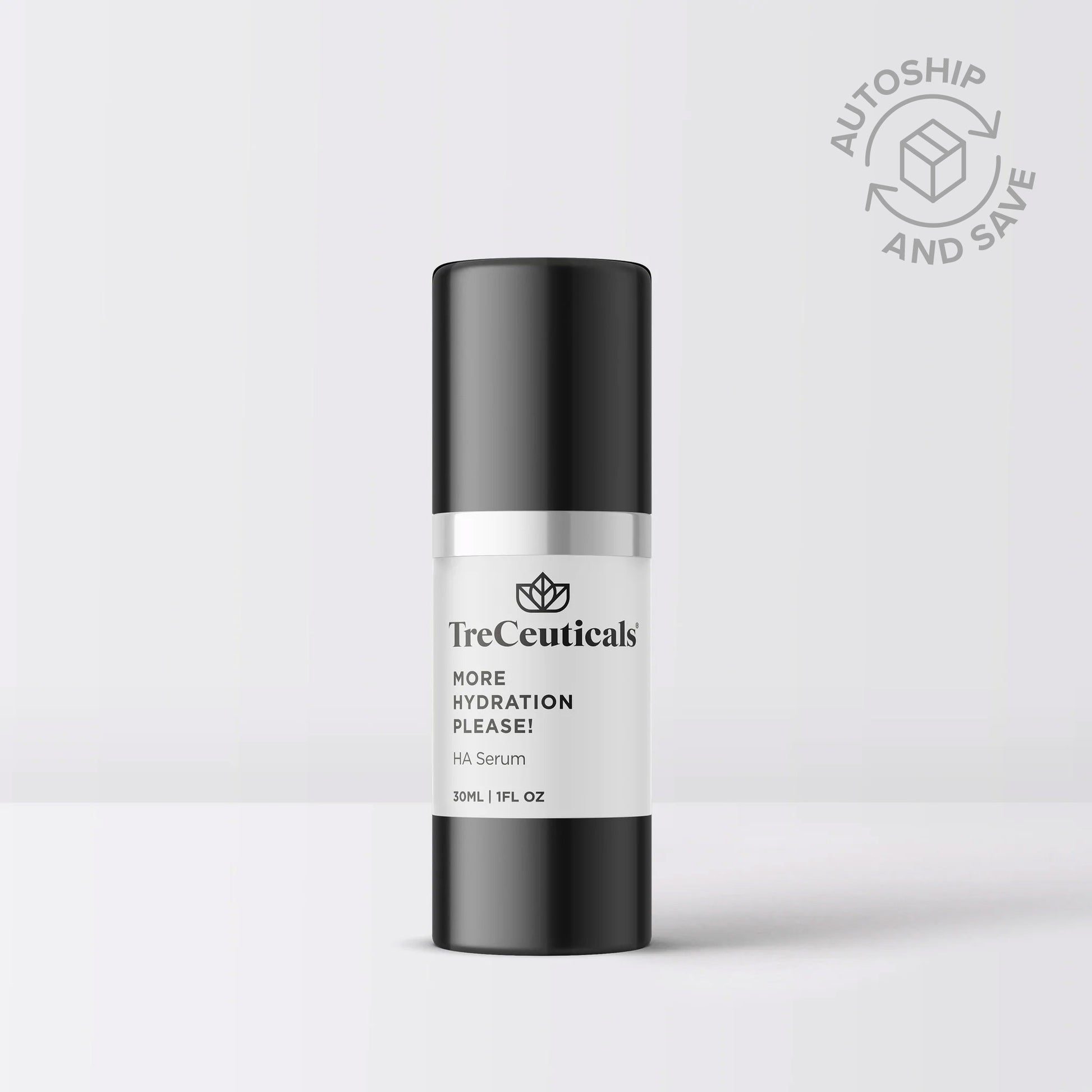 More Hydration Please! is an HA Serum packed with hyaluronic acid, peptides and plant powered oil. More Hydration Please! visibly plumps the appearance of fine lines and wrinkles while boosting the synthesis of elastin and hydration levels in the skin.